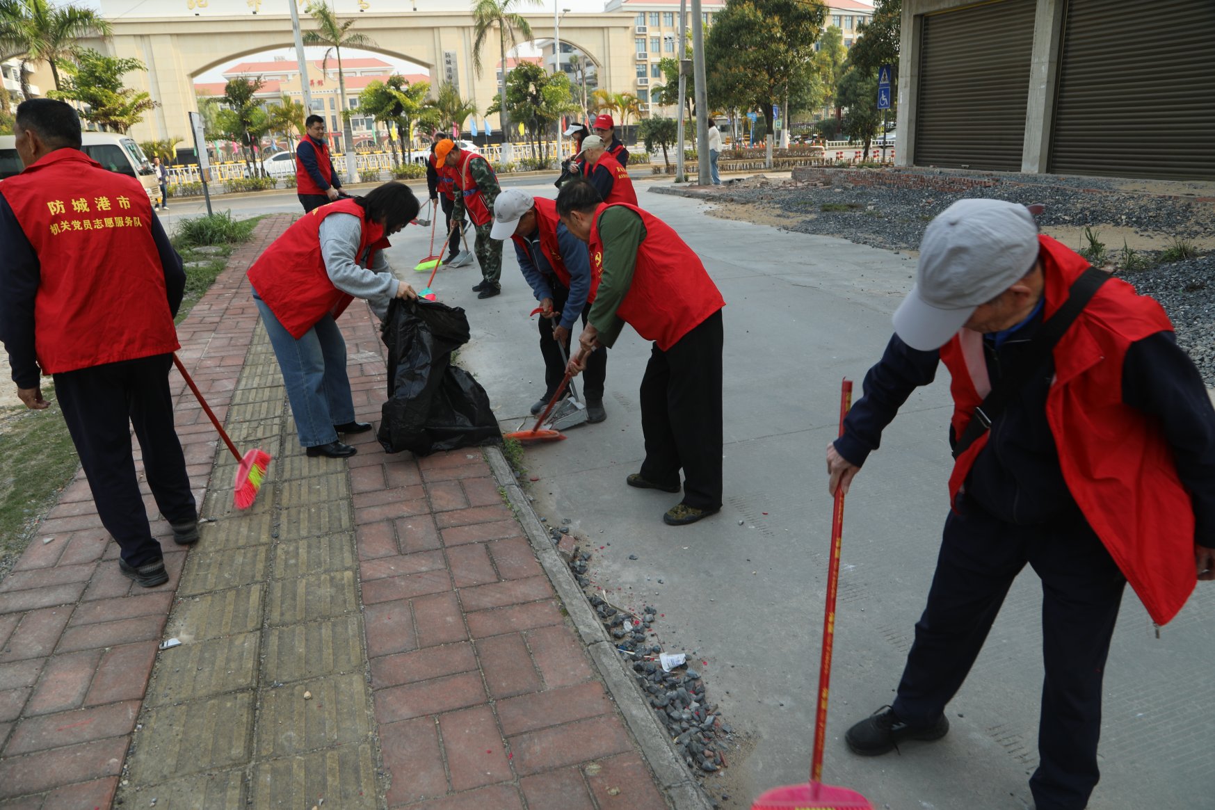 会后,全体人员前往防城区冲孔社区安置小区二期,开展学雷锋志愿活动。这里是局双联共建环境清扫责任区域,大家手持扫帚、铲子、垃圾袋等工具,分工明确,配合默契。有的清扫路面垃圾,有的铲除墙壁小广告,有的清理卫生死角。尽管天气闷热,汗水湿透了衣衫,但没有一人喊累。军休干部们干劲十足,用实际行动践行着雷锋精神。一位路过的居民竖起大拇指称赞道:“你们真是好样的,为我们小区的环境改善出了大力!”经过两个多小时的努力,小区环境焕然一新,变得更加整洁、美观。