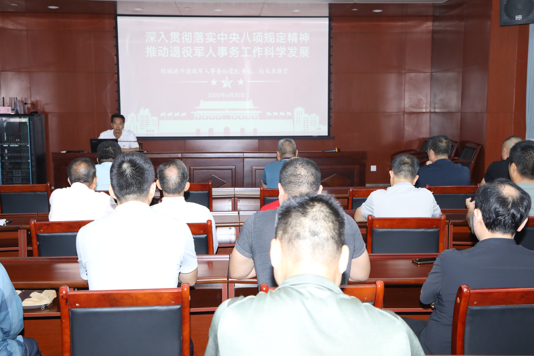 活动伊始,全体人员共同学习了习近平总书记最新重要讲话精神,深刻领会党的理论内涵,为后续的活动筑牢思想基础。随后,局党组书记、局长苏胜堂围绕《深入贯彻落实中央八项规定精神,推动退役军人事务工作科学发展》这一主题,为大家带来“七一”专题党课。深入剖析了当前工作中的廉政要点,结合退役军人事务工作实际,强调了廉洁从政的重要性,要求全体党员干部务必将中央八项规定精神落到实处,以更高的标准要求自己,为退役军人事务工作的科学发展贡献力量 。