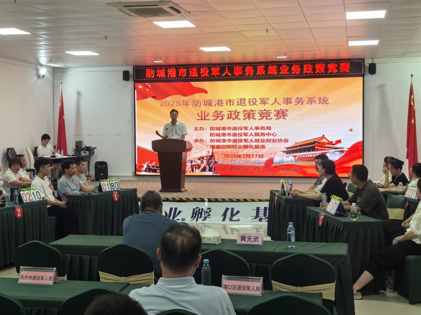 7月17日,防城港市2025年退役军人事务系统业务政策竞赛在防城区港盛空间退役军人创业孵化基地圆满收官。这场以“岗位练兵强能力、优质服务当先锋”为主题的赛事,成为检验全市退役军人服务队伍业务功底的“试金石”。