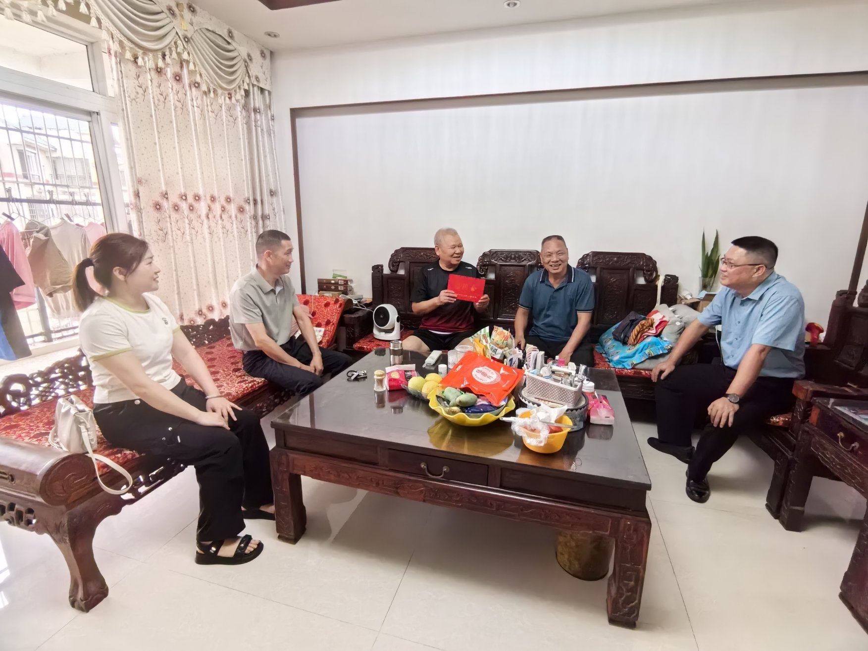 此次慰问活动构建“分类走访、精准关怀”工作模式,由局党组书记、局长苏胜堂,局党组成员、副局长王家锋分别带队。走访中,工作人员深入老兵家中,不仅详细询问老兵们的家庭生活、健康状况,了解他们的思想动态,现场解读最新优抚政策,认真倾听诉求,收集对退役军人服务管理工作的建议。并现场为自主择业军转干部和逐月领取退役金退役军人送去了慰问金和大米、花生油等生活物资,为他送去党和政府的关怀与温暖。