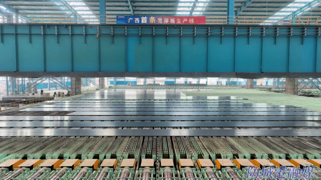 广西钢铁集团(柳钢防城港基地)3800mm宽厚板生产线冷床区域。