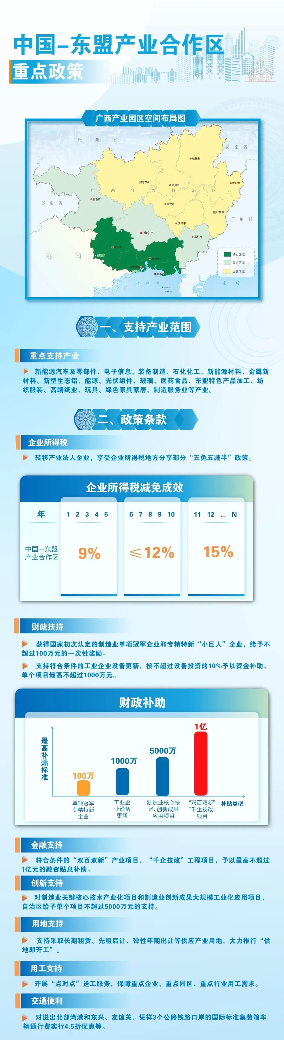 国家和自治区采取一系列政策措施支持沿边临港产业园区和中国—东盟产业合作区建设发展,具体有哪些重点政策?一起来看看——