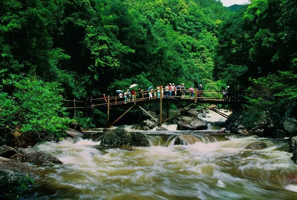 十万大山国家森林公园被誉为“中国氧都”,很适合久居城市的人过来“洗肺”。森林公园主要景点有天然药浴池、珠江源、狮山观海等。登上狮山观海,可以眺望几十公里外的越南,领略“一山看两国,十里不同天”的风光。林海茫茫,古木参天,水清石奇,悬桥摇荡,行走在十万大山森林公园的木栈道上,有种“人在桥上走,似在画中游”的感觉。