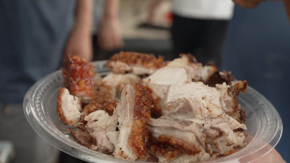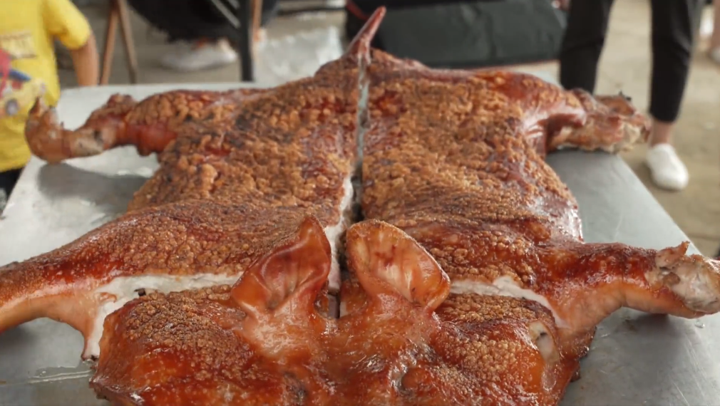 选用本地养殖的猪,抹上特制的酱料腌制好,架到碳火上烤。烤制好的猪的表皮焦脆香酥、香气诱人,咸度合宜,每一口,都是极致的享受!生菜是烤猪肉的绝佳搭档,生菜的甜脆与烤猪肉的焦嫩组合在一起,中和了油腻,是能让人大快朵颐却不觉得腻的诀窍。