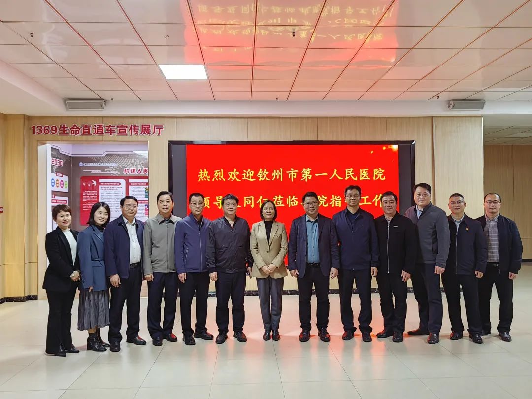 医院党委书记梁庆富对钦州市第一人民医院一行的到来表示热烈欢迎,并简要介绍了医院党建品牌建设,以及党建引领、纪法联动、业务融合三管齐下,破解医院难点、堵点、改进作风、推动医院发展等党建工作亮点。