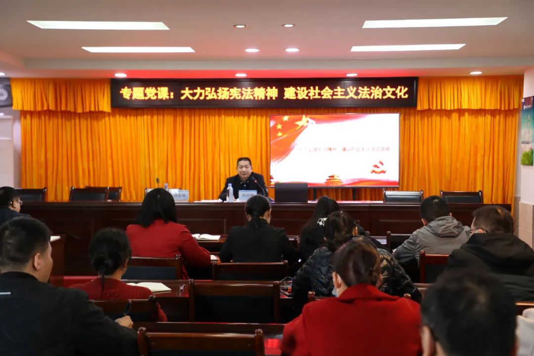 为深入学习贯彻习近平法治思想,弘扬宪法精神,谱写新时代全面依法治国新篇章,12月6日,防城区人民医院党委书记、院长陈国锋以“大力弘扬宪法精神 建设社会主义法治文化”为题,为全院党员、入党积极分子、入党申请人上了一堂法治建设专题党课,推动宪法精神和法治文化深入人心,带动全体党员干部职工积极投身法治建设,为推动医院高质量发展提供有力保障。