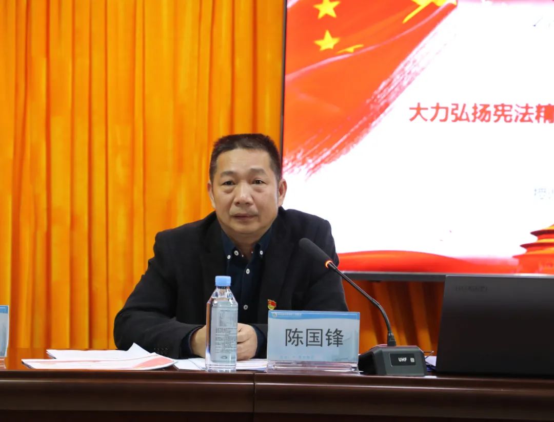 陈国锋从“高瞻远瞩的决策和审时度势的举措”、“充分发扬民主、凝聚共识力量的过程”、“‘四个自信’的深刻彰显”、“尊崇宪法地位、增强宪法意识的过程”、“让宪法精神深入人心”等五个方面进行授课,并强调了宪法对国家、社会、单位和个人的重要性。同时,结合医疗卫生行业的实际,讲解了医疗卫生法律法规知识,教育引导干部职工们在日常工作生活中要做到遵纪守法,切实提高医疗服务质量,保障人民群众的生命安全和身体健康。