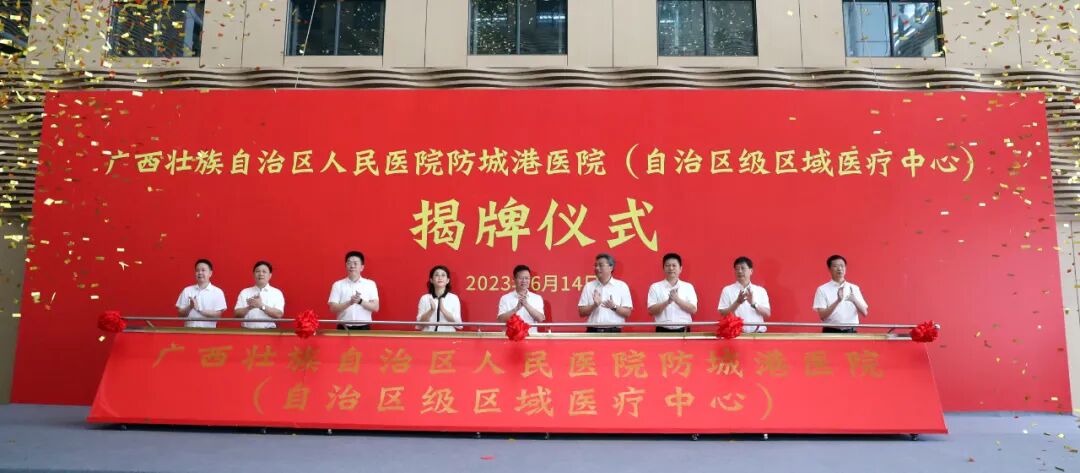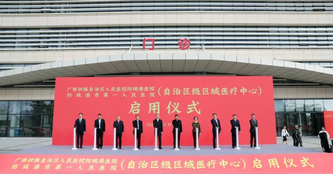 为助力防城港国际医学开放试验区建设,积极构建区域医疗服务体系新格局。在自治区卫生健康委等部门的积极支持下,该院与广西壮族自治区人民医院共建自治区级区域医疗中心——广西壮族自治区人民医院防城港医院。2023年6月,广西壮族自治区人民医院防城港医院正式揭牌。2023年12月,项目医院门急诊正式启用。随着自治区人民医院的共建赋能,区域医疗中心逐步在科研创新、临床新技术应用、服务群众健康等方面取得重大进展,通过六个重点专科建设,以点带面,大大提高了市第一人民医院的医疗救治水平,填补了多项防城港市医疗技术的空白,打造了老百姓家门口的好医院,造福本地患者。