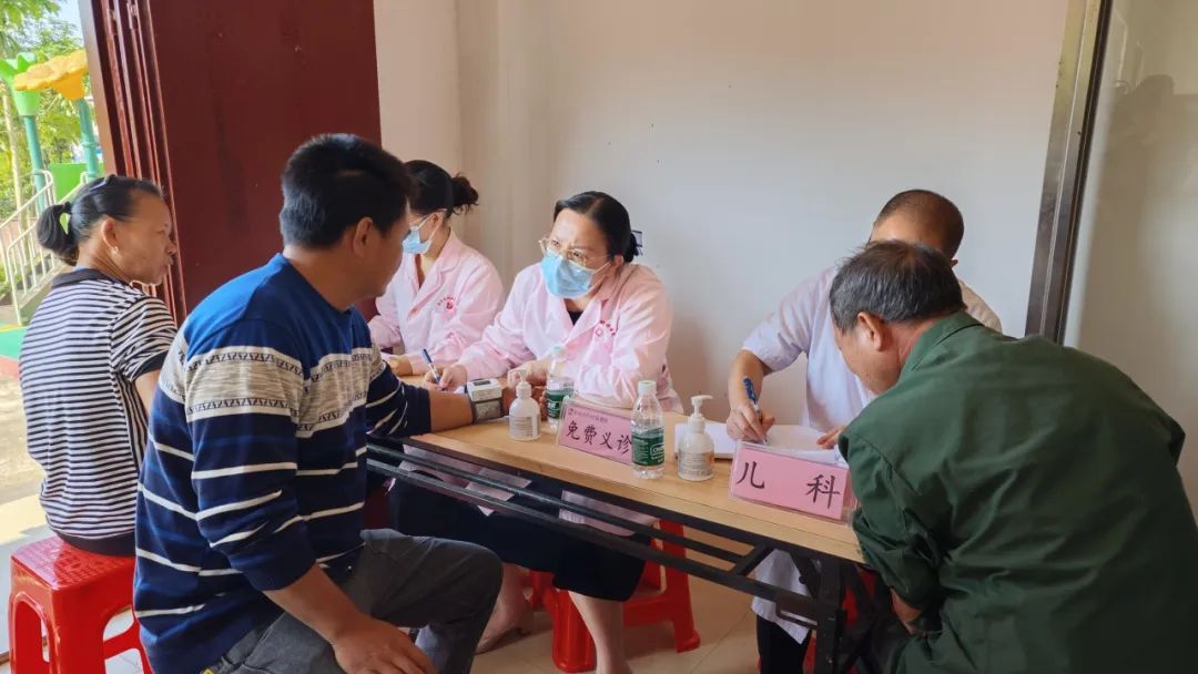 在义诊区域,医疗团队精心为群众提供医疗服务,儿科医生细心检查孩子们的身体状况,并根据检查结果开具药方。从耐心询问病史、仔细记录信息,到免费测量血压,每一步都透露出对群众健康的亲切关怀。
