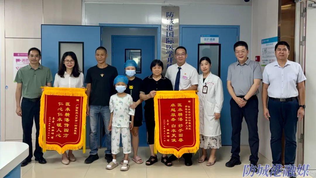 防城港国际医学开放试验区地中海贫血移植仓设立在市妇幼保健院医疗用房5楼,于2024年6月30日正式交付使用,该院组建多学科团队到广西医科大学第一附属医院进修培训造血干细胞移植技术。奇奇来到市妇幼保健院就诊后,医疗团队迅速行动,根据患者的具体情况制定了特色地中海贫血移植“广西方案”。4月17日,奇奇正式进入移植仓,进行同胞全相合造血干细胞移植术。经过在仓1个多月的治疗,奇奇的血细胞逐步向正常水平恢复,检查显示其造血功能得到重建,达到出仓条件。