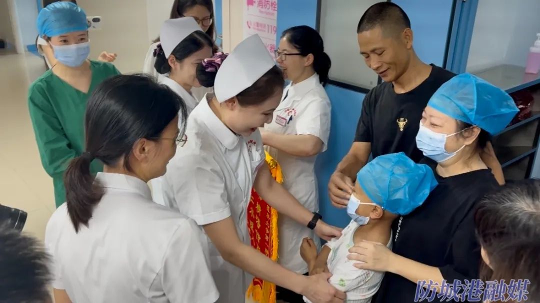 “孩子能在‘六一’国际儿童节前出仓,非常感谢医护人员的贴心服务。”患者家属看着孩子恢复良好,感激地握着医护人员的手,随后还赠送了锦旗以表感激之情。