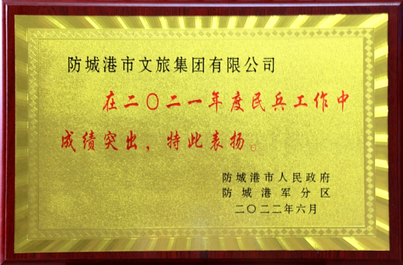 市文旅集团获2021年度防城港市民兵整组工作优秀单位表彰