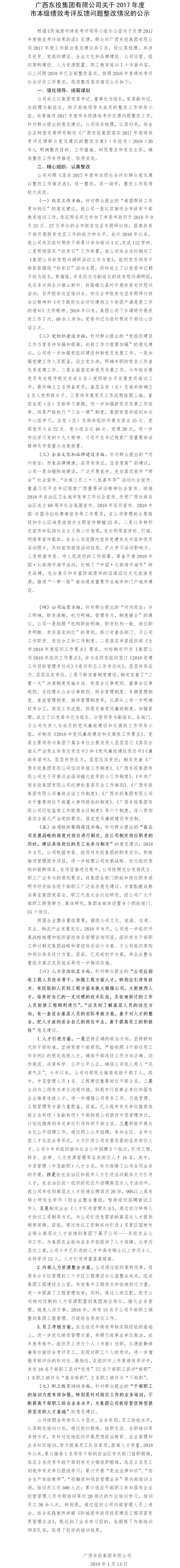 广西东投集团有限公司关于2017年度市本级绩效考评反馈问题整改情况的公示