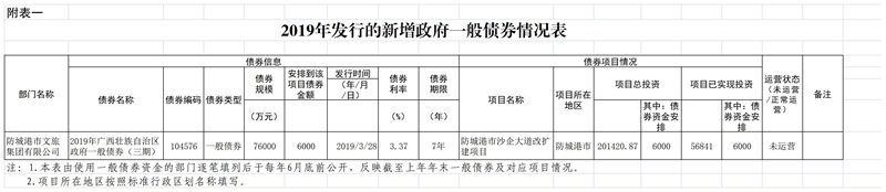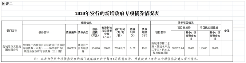 防城港市文旅集团2019-2020年新增政府债券存续期内信息公开