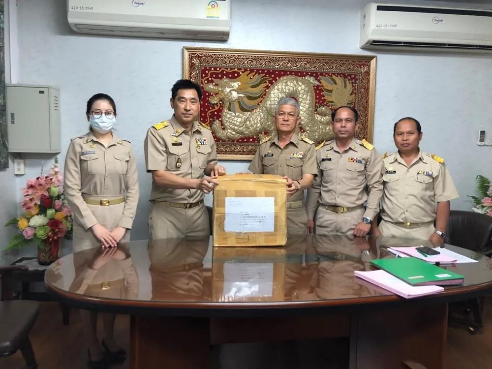 2月3日,泰国黎逸市市长班宗·哥氏吉拉楠、副市长禄查公·玛查玛多亲自检查口罩质量并整理邮寄