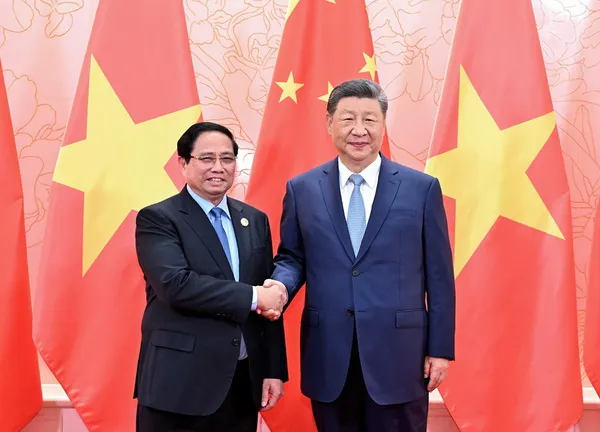 2025年8月31日下午,国家主席习近平在天津迎宾馆会见来华出席2025年上海合作组织峰会的越南总理范明政。