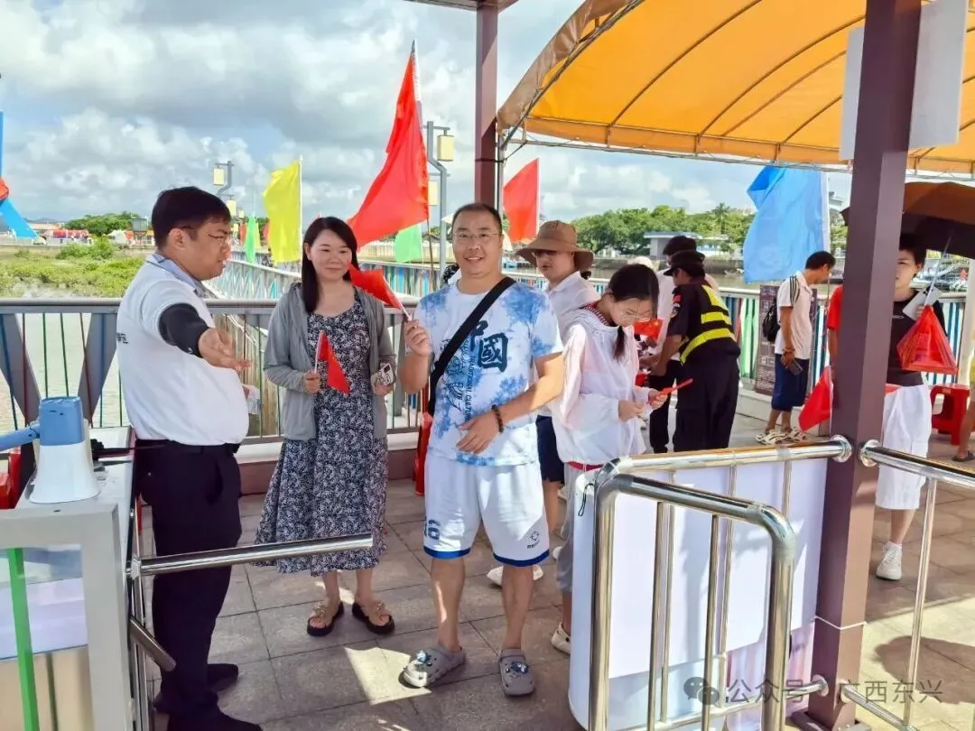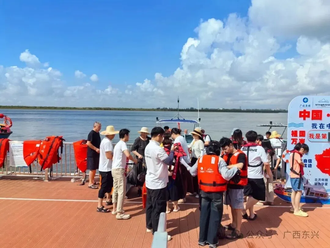 一船饱览两岸景,同心共筑爱国情。中越界河风景区“游览边境足迹,传承红色基因”路线围绕东兴边境特色与红色文化主题,以“沉浸式体验边境守护、传承红色基因”为核心,融合界河、界碑、戍边等元素,打造了集文化展示、互动打卡、精神激励于一体的主题游船,通过可触摸、可参与的沉浸式体验,弘扬卫国戍边精神,赓续红色基因,凝聚爱国情怀。