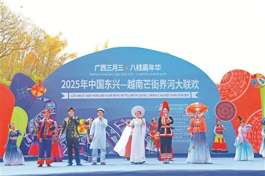 今年4月,由中共防城港市委宣传部、东兴市政府指导举办的2025年中国东兴—越南芒街界河大联欢活动在东兴国门景区国旗街举行。中越两国艺术家与各界群众欢聚一堂,以艺术为媒,共同谱写中越友谊新篇章。