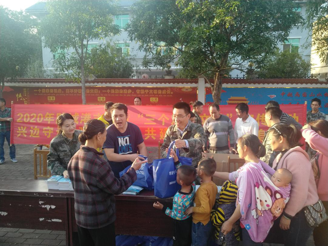 2020年12月2日至3日,防城港市外事办联合东兴市外事办、防城区外事办,充分利用边境村集市人流量大的特点,到东兴市江平镇咤祖村和防城区那良镇里火村、峒中镇峒中村,开展“三个法律文件”宣传活动,通过发放宣传资料、设立咨询台、发放宣传袋等方式,引导边民学法用法,倡导普法文明新风。此外还前往东兴市江平镇咤祖村小学、防城区那良镇里火小学以及峒中镇峒中小学向全校师生宣讲三个法律文件的内容,捐赠普法物品,进一步提高师生学法守边意识。