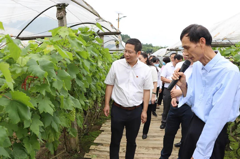 随后,党员们来到全州县才湾镇毛竹山村,在村葡萄种植合作社发起人,致富带头人王海荣的带领下,重走习总书记视察路线,并走进葡萄田中,详细了解该村通过党员引领,发展优质葡萄种植产业,逐步实现全村脱贫,建成社会主义新农村示范点的蜕变历程。听完王海荣的介绍,大家纷纷表示,一定要发挥好党员的示范引领作用,要切实结合防城港的实际情况和集团主责主业,将广西第一个标杆项目海水稻实验基地建设好,打造海水稻种植一、二、三产业示范园,为防城港盐碱地改水田和乡村振兴工作做出国有企业应有的贡献。