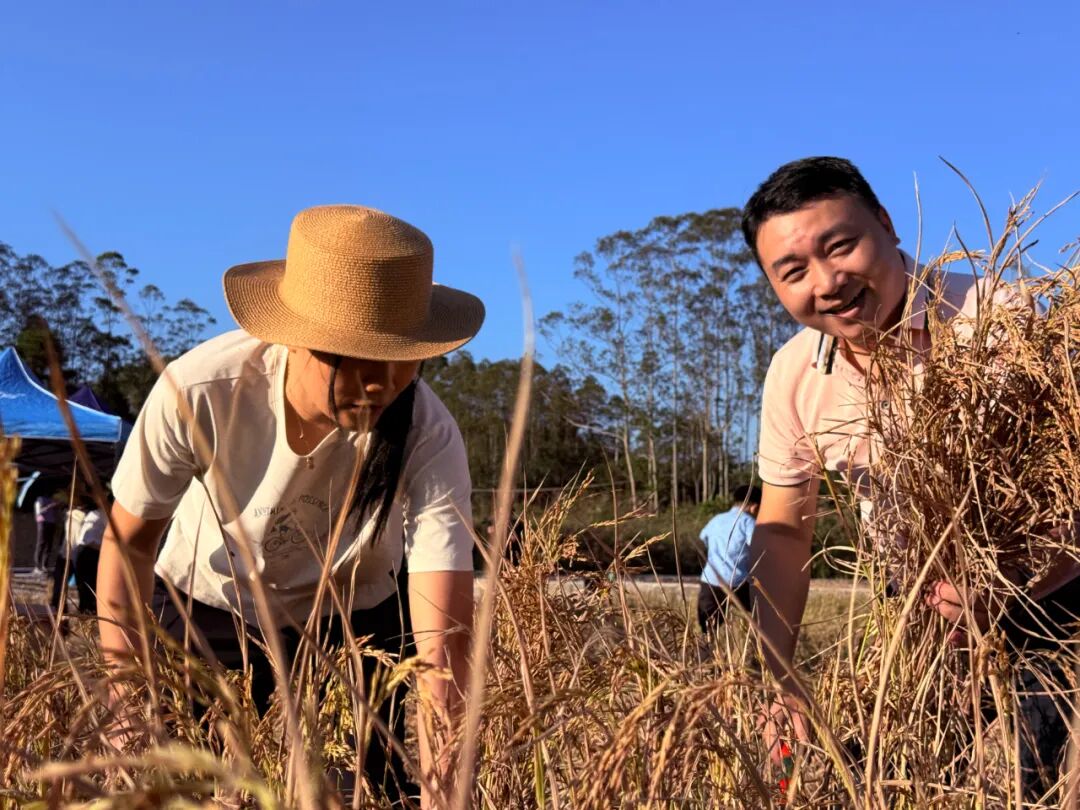 收割现场,市兴港农业公司带来的海红香米、海红米酒吸引了众人目光。工作人员热情介绍产品特点、营养功效与制作工艺,认真倾听大家的意见反馈。“口感独特,芋香浓郁!”“喝完还想再来一杯~” 现场党员、团员志愿者们纷纷为特色农产品点赞,让丰收的喜悦多了一份舌尖上的满足。