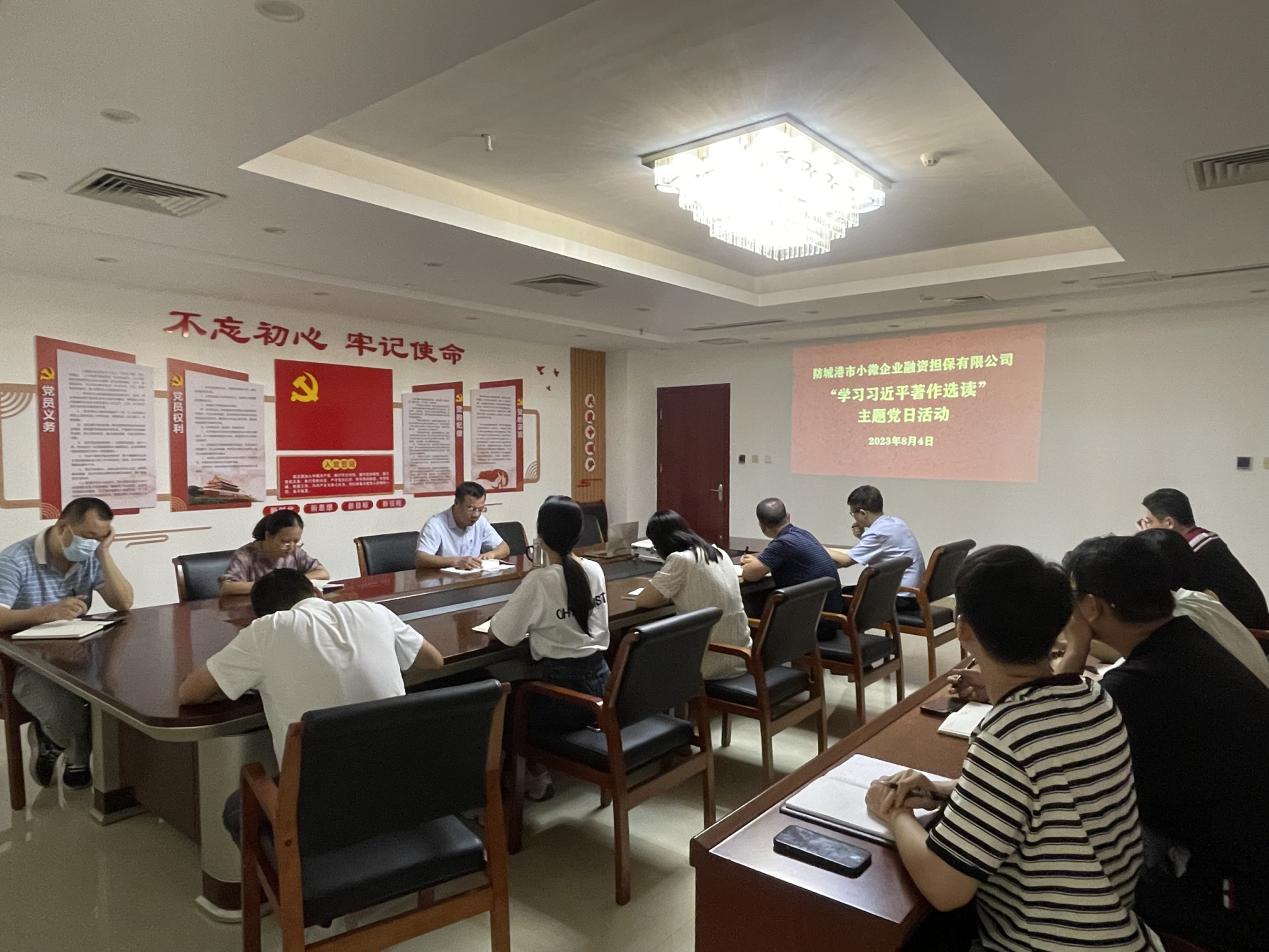 为了进一步加深党员干部对习近平新时代中国特色社会主义思想的理解,2023年8月4日下午,防城港市小微企业融资担保有限公司党支部组织党员干部开展“学习《习近平著作选读》”主题党日活动,进一步强化理论学习,提高党员干部理论素养。公司党支部书记黄忠东同志主持,全体员工参加学习活动。
