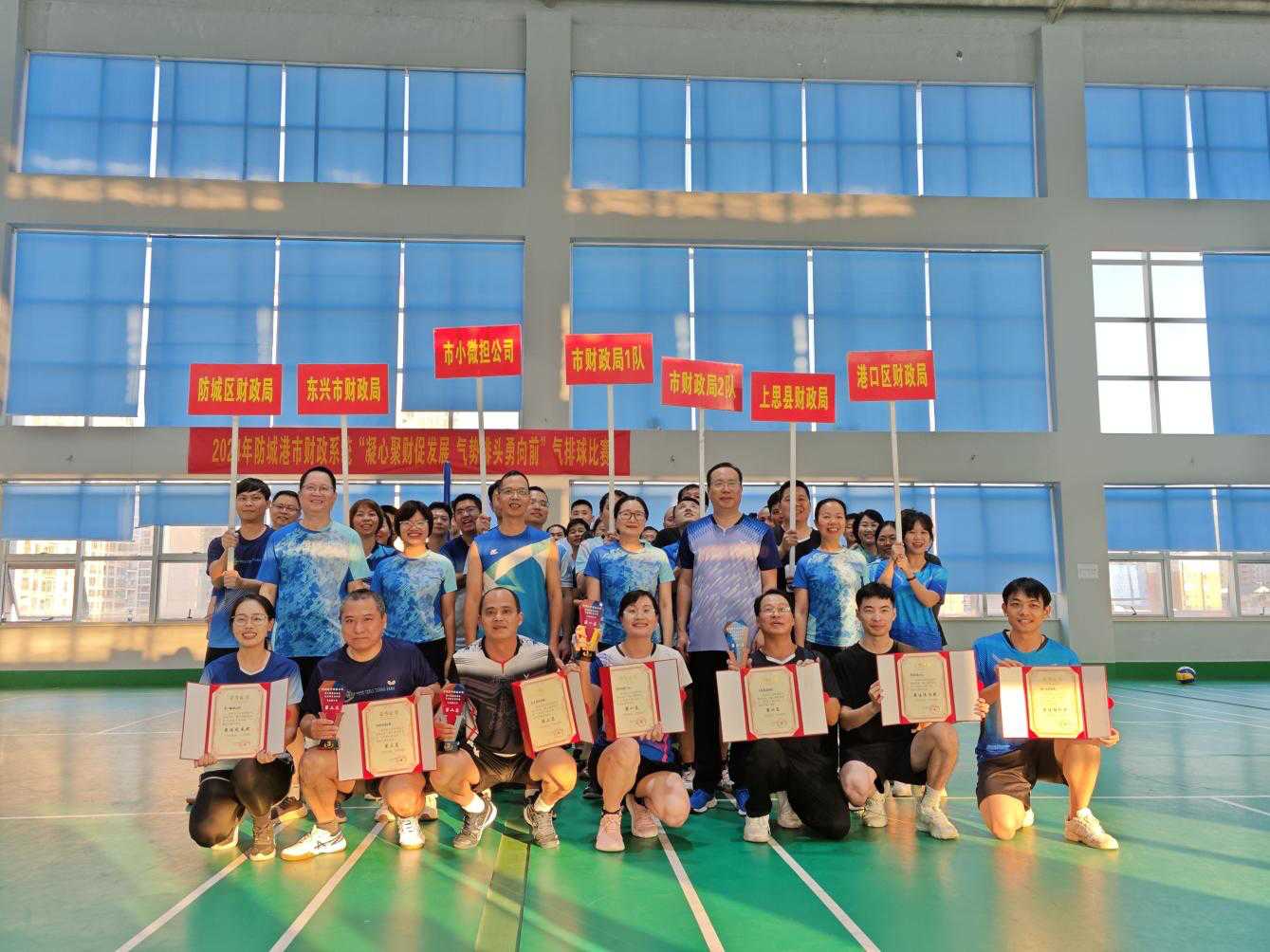 为增强干部职工的凝聚力和向心力,激发财政干部队伍活力,促进干部职工身心健康。近日,防城港市财政局举办2024年全市财政系统职工气排球比赛。市财政局、各县(市、区)财政局和市小微担公司近120名干部职工参与本次比赛。