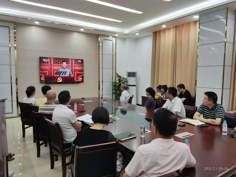 7月1日上午8时,庆祝中国共产党成立100周年大会在北京天安门广场隆重举行,中共中央总书记、国家主席、中央军委主席习近平发表重要讲话。市医疗保障局、市医保中心全体干部职工在局会议室集中观看大会直播。