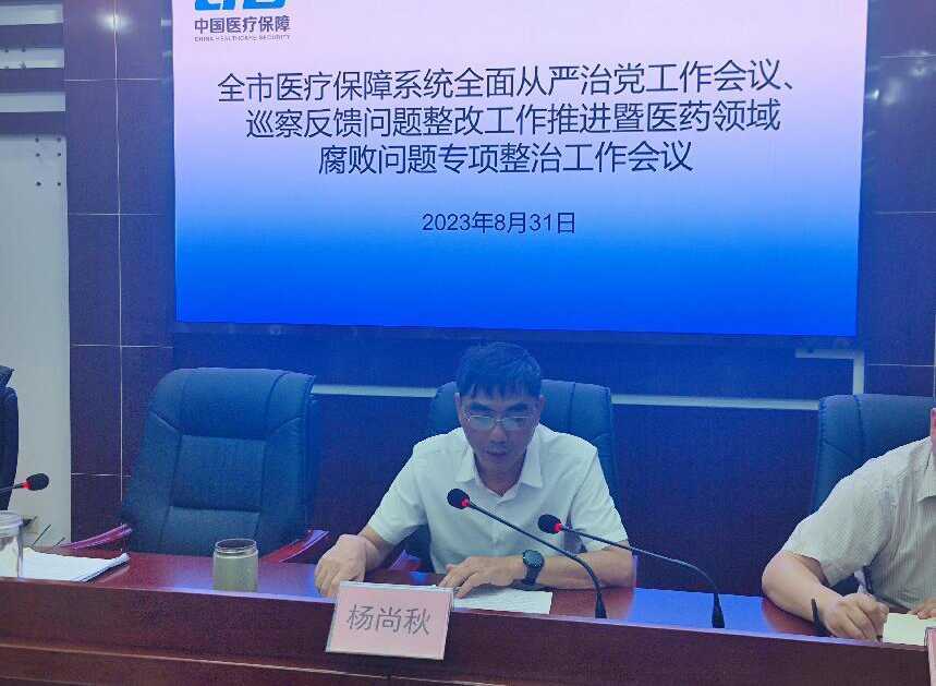 8月31日,市医保局召开全市医疗保障系统全面从严治党、巡察反馈问题整改工作推进暨医药领域腐败问题专项整治工作会议,总结全市医疗保障系统全面从严治党、党风廉政工作,安排部署下一步全市医保系统全面从严治党和党风廉政工作,以及部署推进市委巡察反馈问题整改工作和全市医保领域医药领域腐败专项整治工作。市医保局党组书记、局长杨尚秋,市纪委监委驻市卫生健康委纪检监察组组长黄顺松出席会议并讲话,市纪委宣传部部长张耀富作专题辅导。