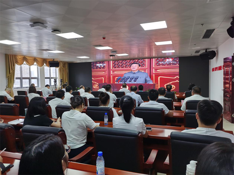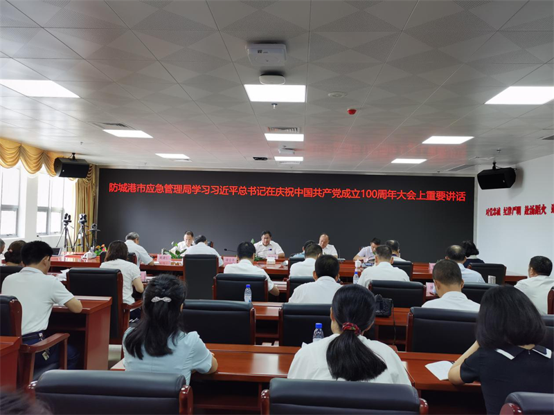 庆祝中国共产党成立100周年大会7月1日上午8时在北京天安门广场隆重举行。中共中央总书记、国家主席、中央军委主席习近平发表重要讲话。防城港市应急管理局组织全体干部职工集中收看电视直播,共庆中国共产党百年华诞。