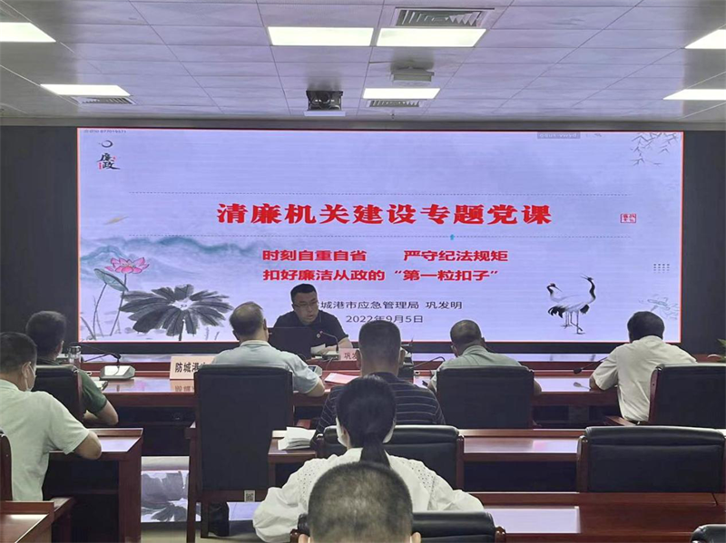 2022年中秋将至,为进一步强化警示教育,营造风清气正、清爽廉洁的节日氛围,驰而不息打好作风建设攻坚战、持久战,防城港市应急管理局于9月5日开展清廉机关建设专题党课暨中秋节节前集体廉政谈话。会议由局党委书记、局长巩发明主持。