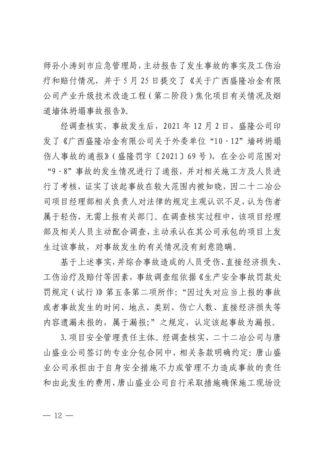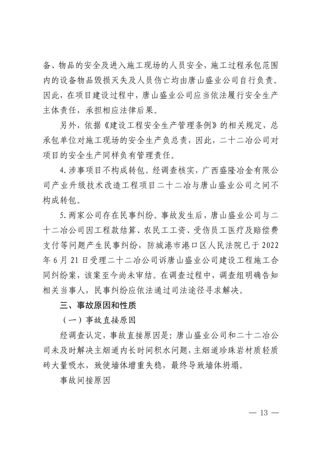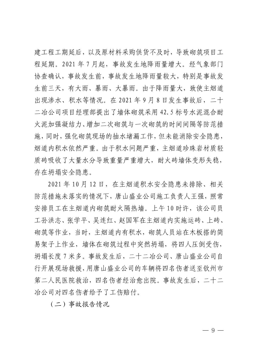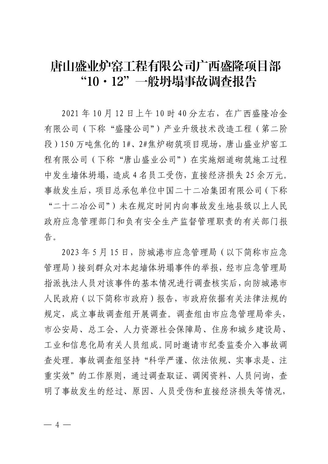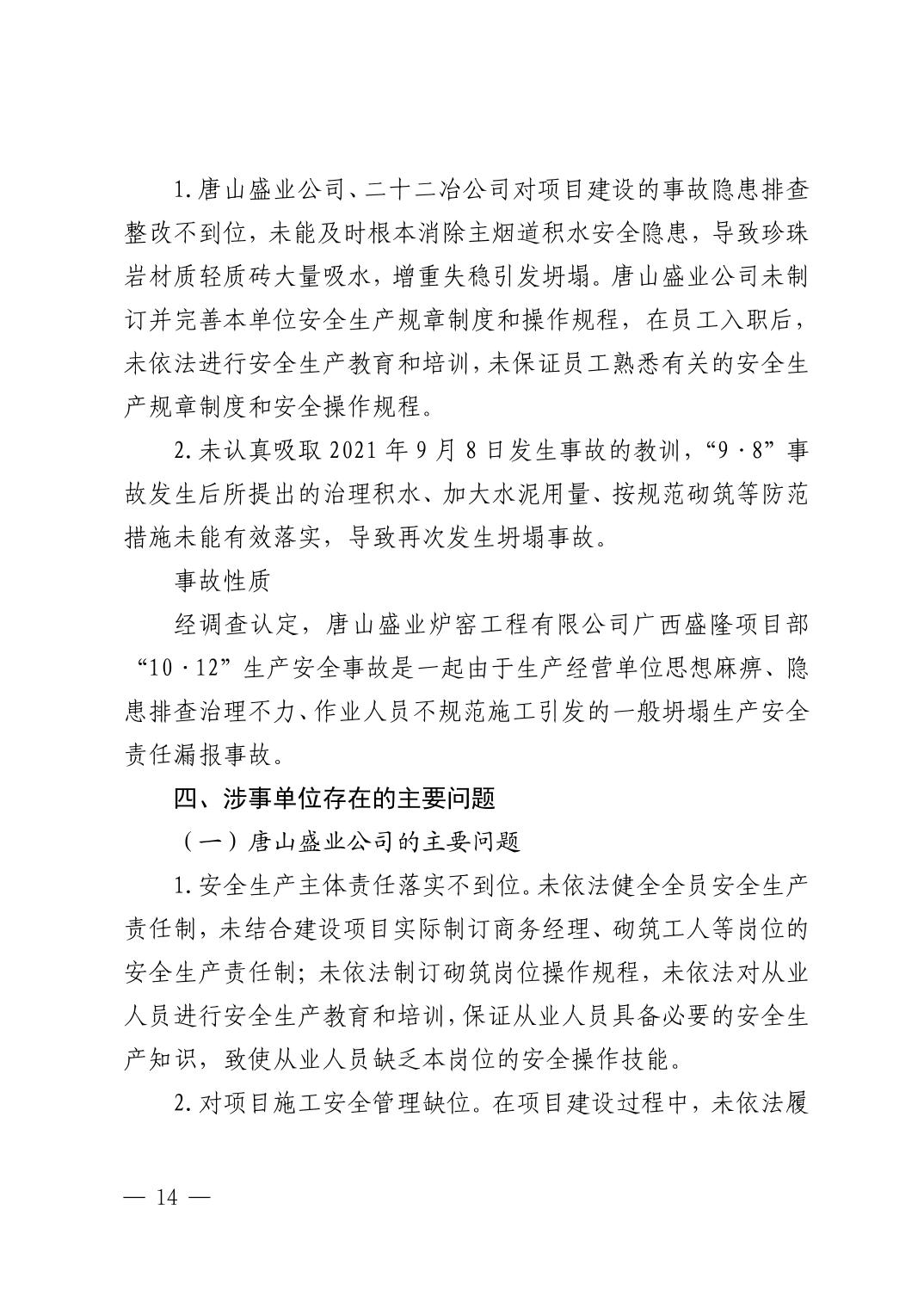 唐山盛业炉窑工程有限公司广西盛隆项目部“10·12”一般坍塌事故调查报告