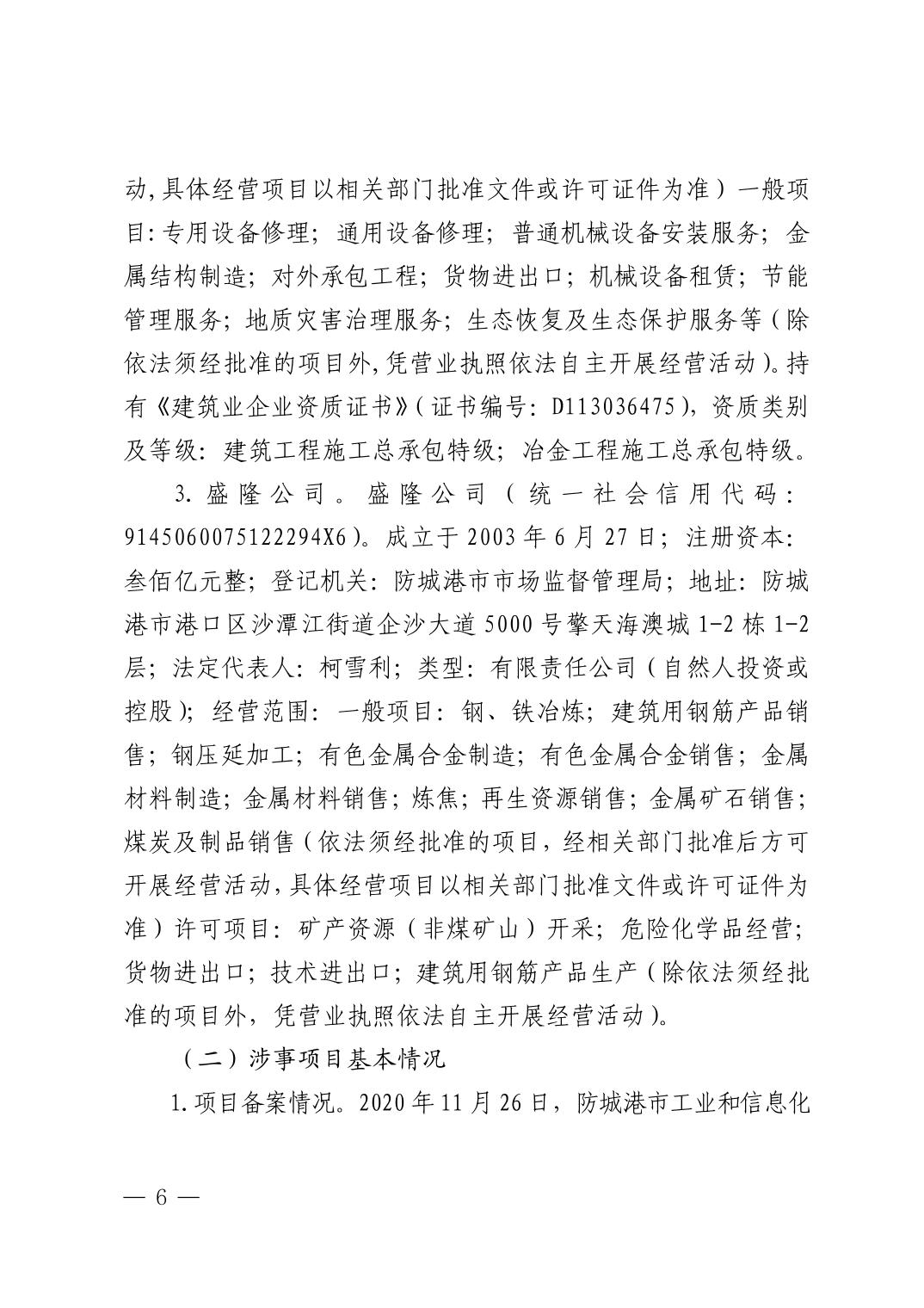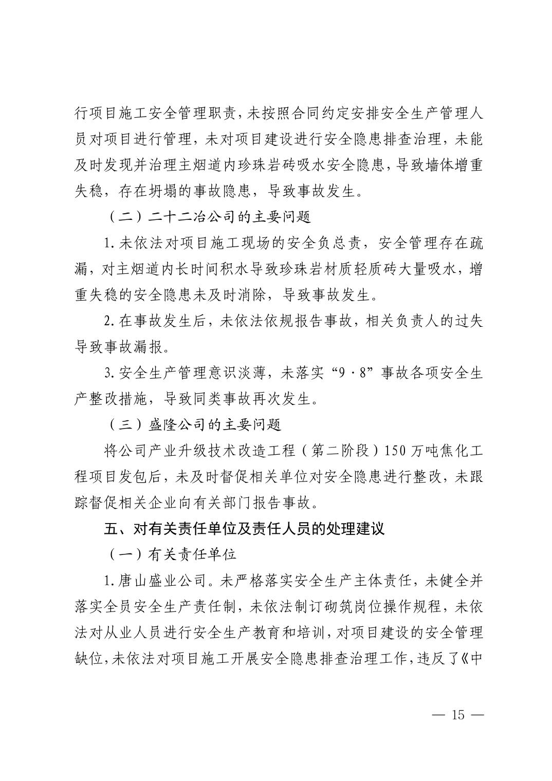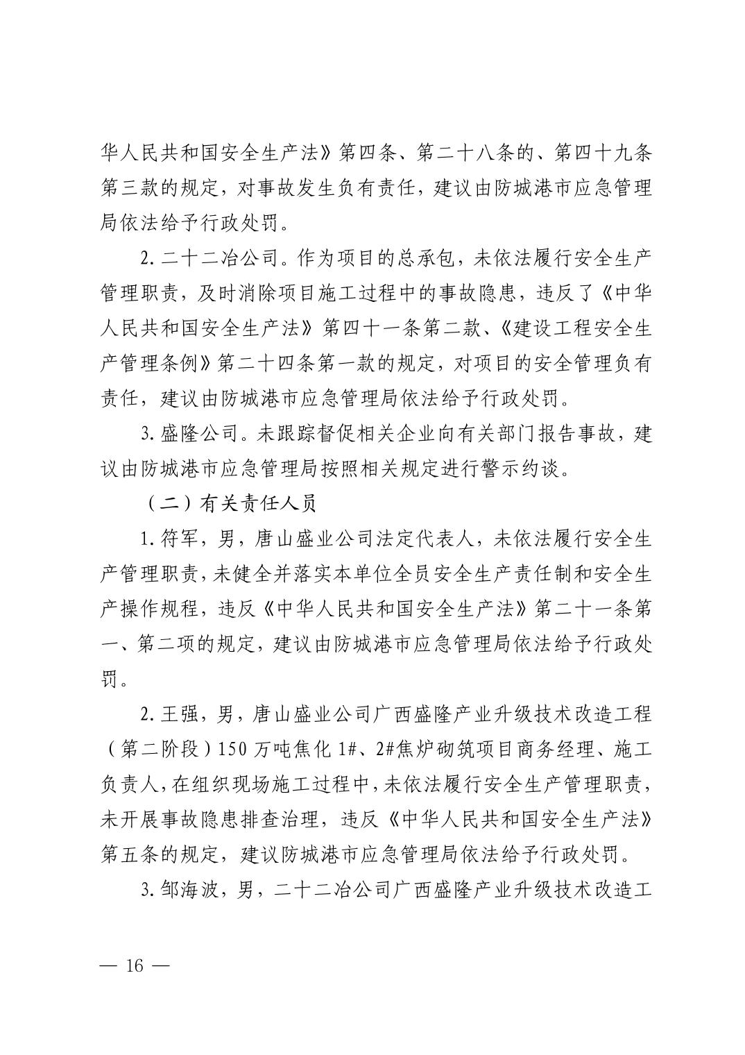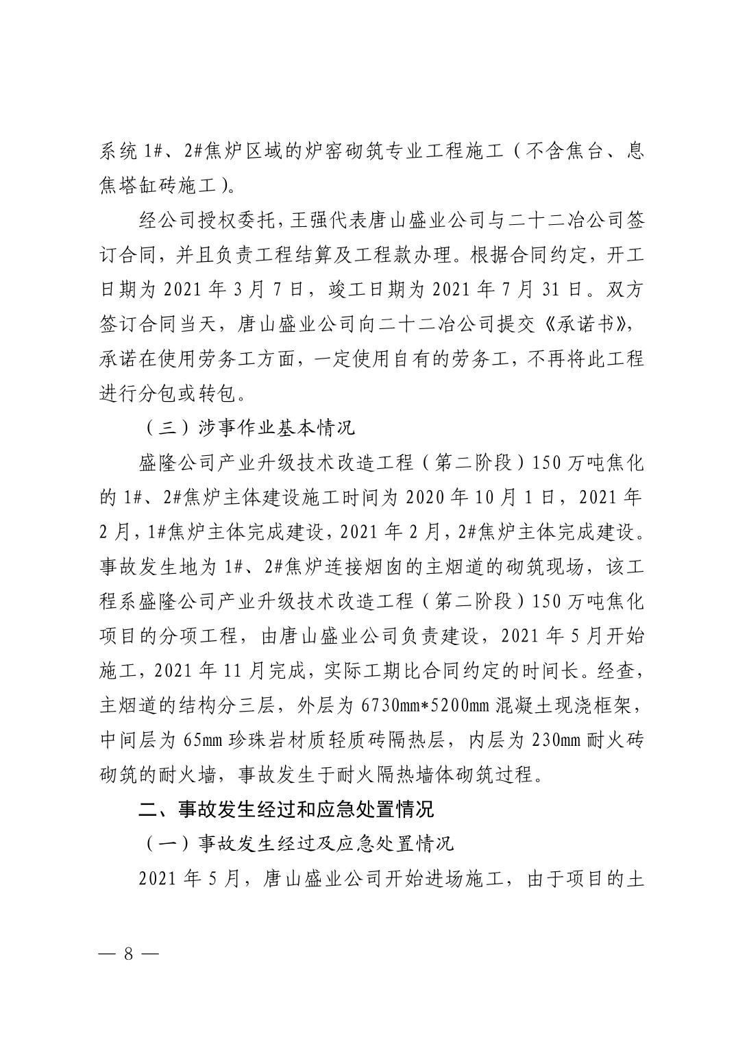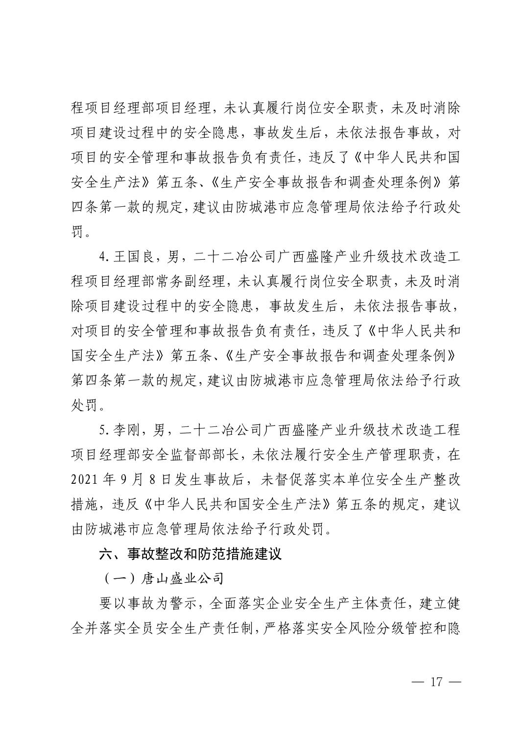 唐山盛业炉窑工程有限公司广西盛隆项目部“10·12”一般坍塌事故调查报告