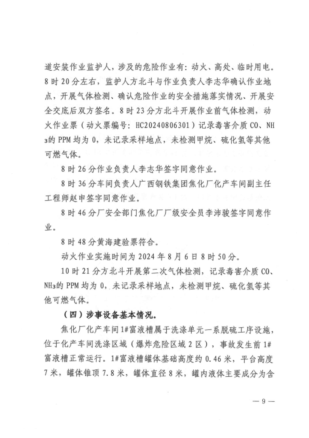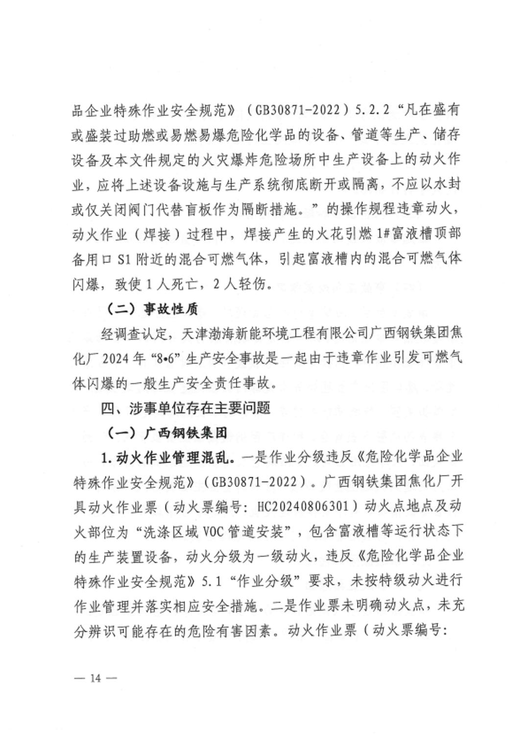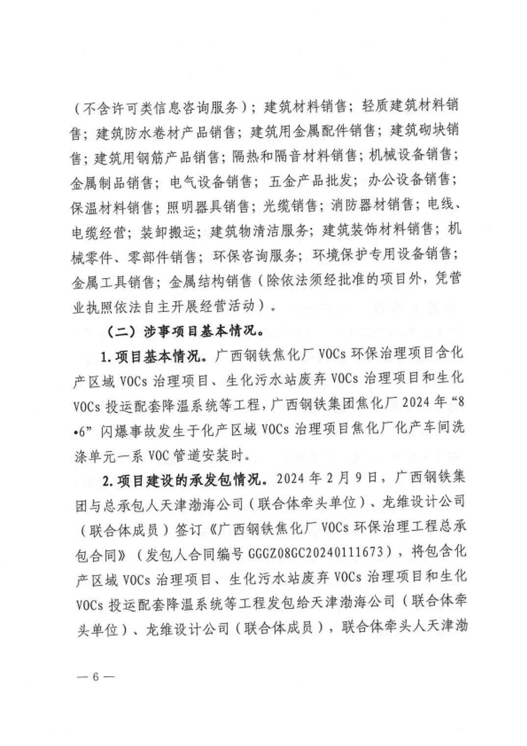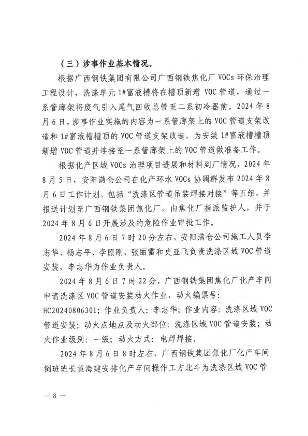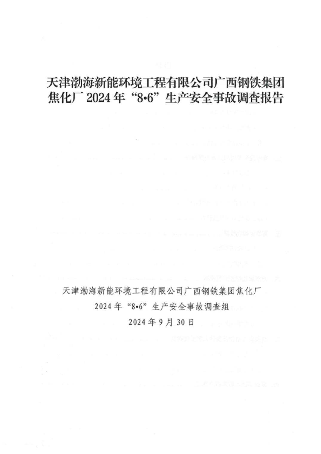 天津渤海新能环境工程有限公司广西钢铁集团焦化厂2024年“8•6”生产安全事故调查报告