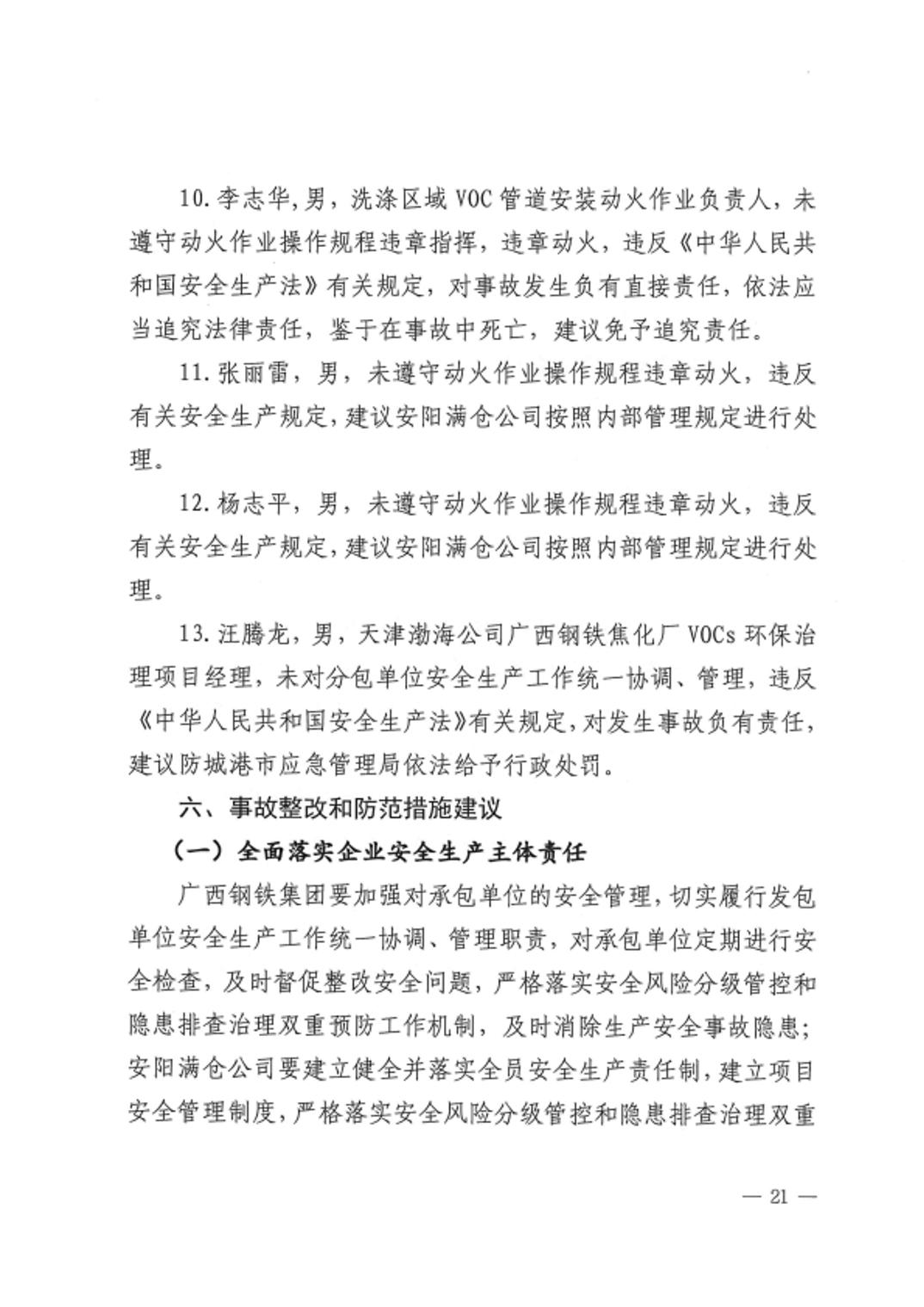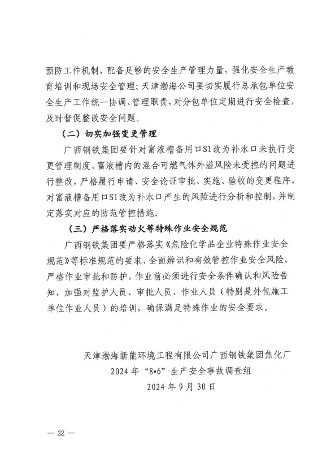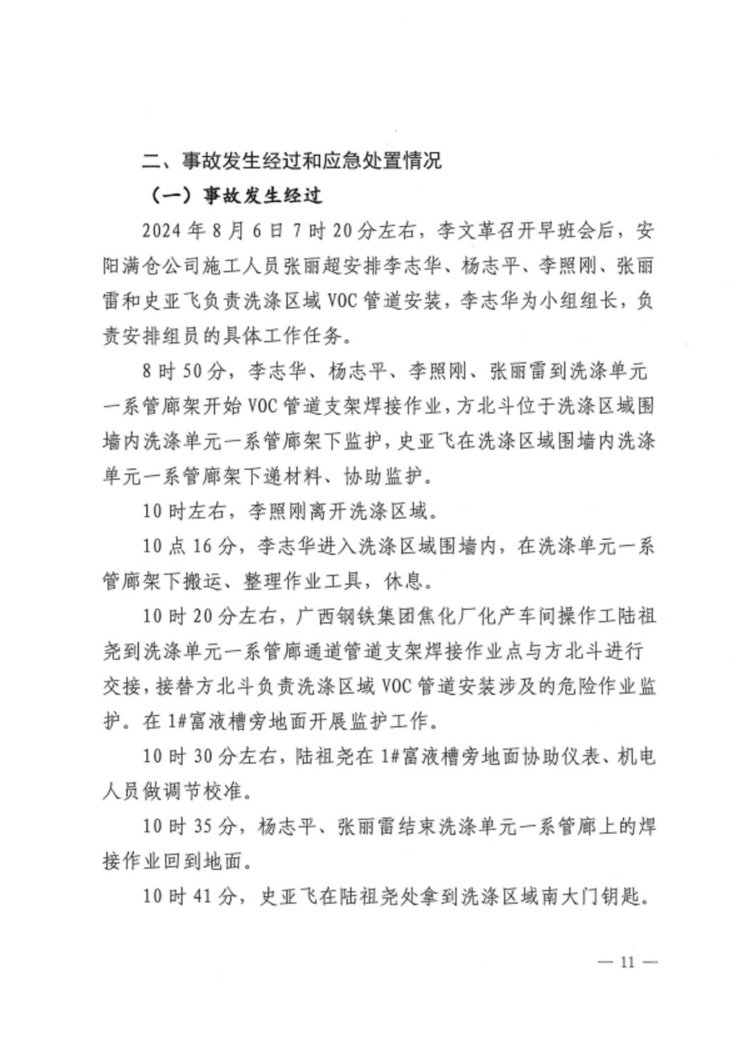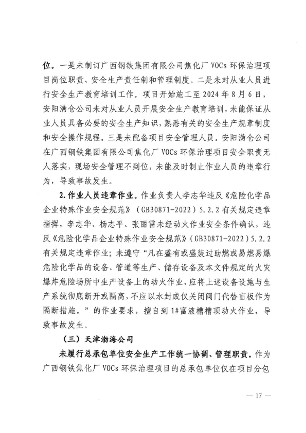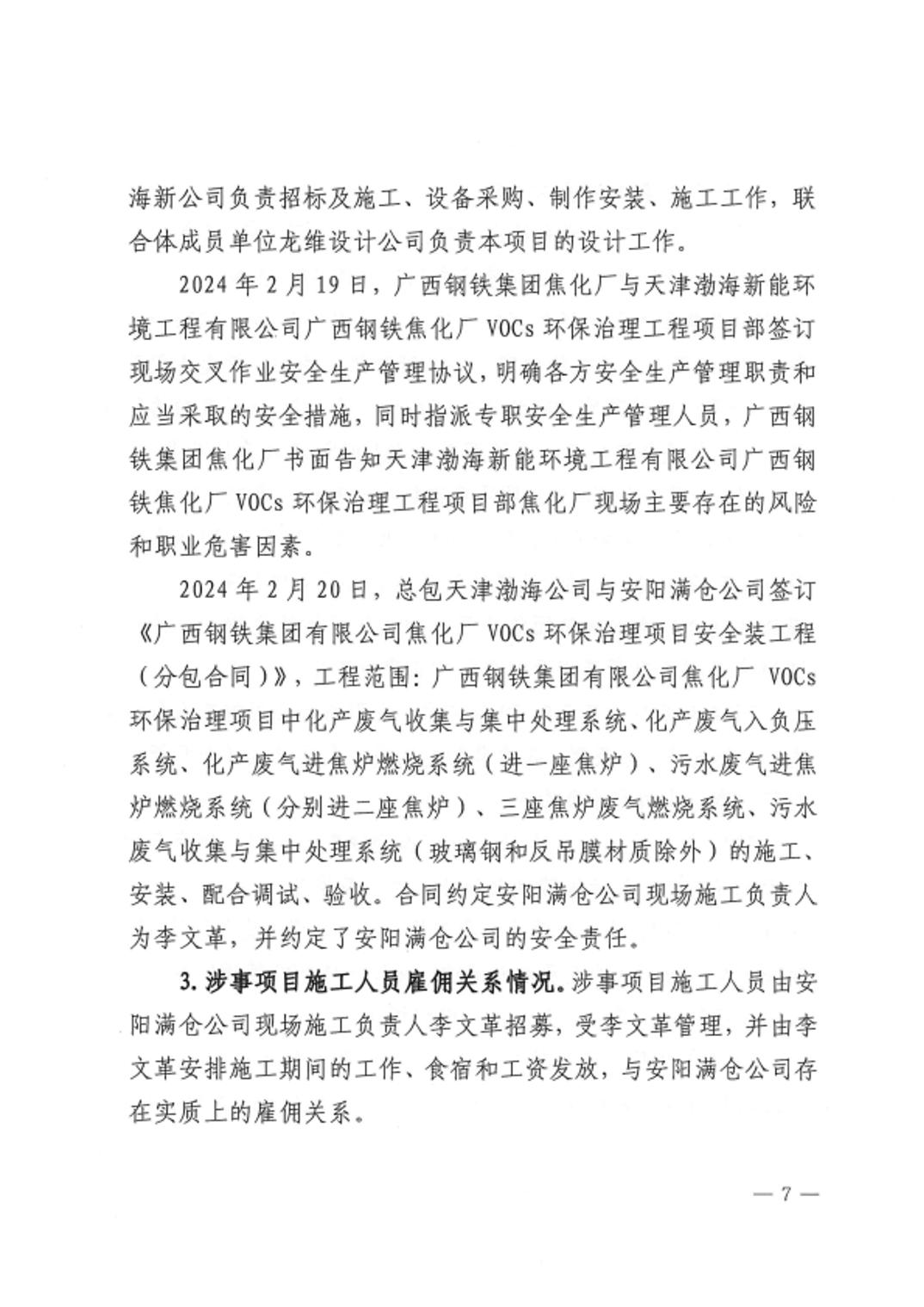 天津渤海新能环境工程有限公司广西钢铁集团焦化厂2024年“8•6”生产安全事故调查报告