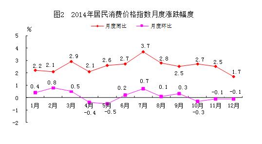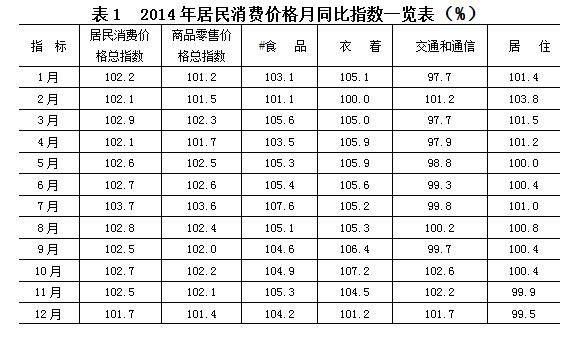 全年物价总水平同比上涨2.6%,涨幅与上年持平。其中,食品类、衣着两类价格分别上涨4.8%、5.1%,家庭设备用品及维修服务上涨1.2%,医疗保健和个人用品上涨1.0%,娱乐教育文化用品及服务上涨1.7%,居住上涨0.7%,烟酒及用品下跌0.2%,交通和通信下跌0.4%。