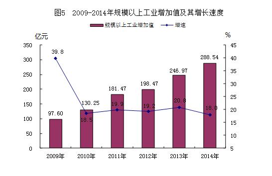 全年工业总产值1164.17亿元,增长17.7%;实现工业增加值298.41亿元,增长17.1%。其中,规模以上工业产值1138.20亿元,增长18.0%;规模以上工业增加值288.54亿元,增长18.0%。