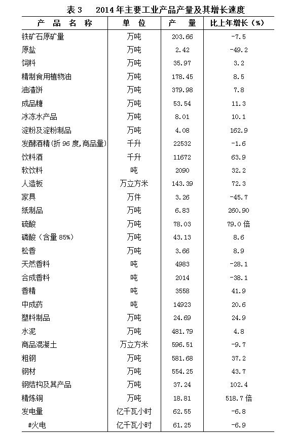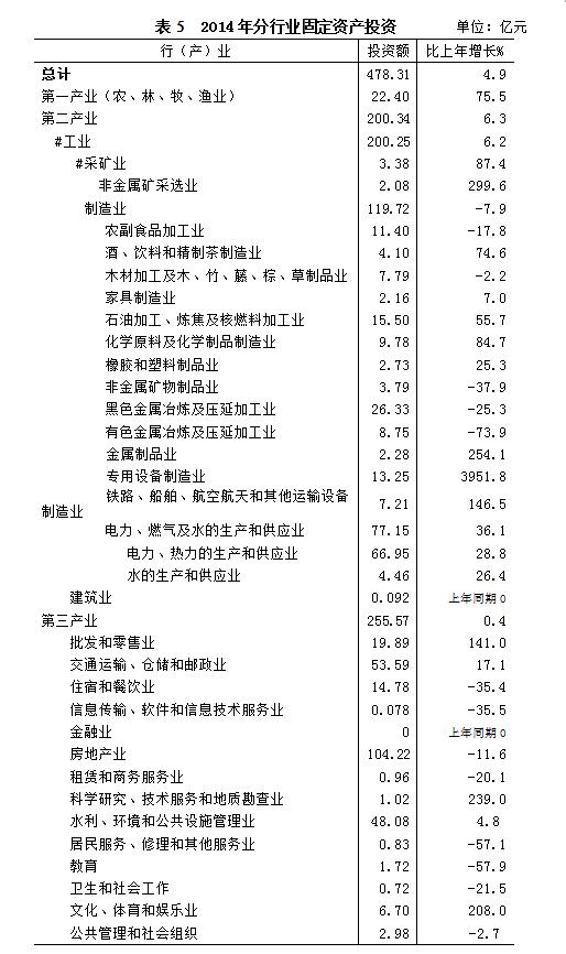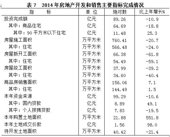 7、2014年招商引资起统点提高,同比增速招商部门暂不作统计;