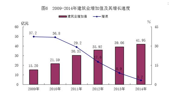 全年建筑业增加值41.95亿元,增长3.2%。具有资质等级的总承包和专业承包建筑业企业50家,全年完成建筑业总产值78.88亿元,增长5.8%;房屋建筑施工面积443.87万平方米,增长8.5%;房屋建筑竣工面积313.38万平方米,增长35.2%;实现利税总额6.99亿元,增长40.4%,其中利润总额4.94亿元,增长65.8%。