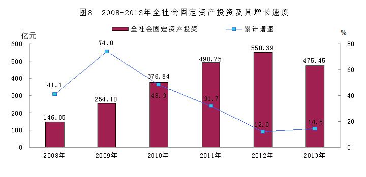 全市完成全社会固定资产投资475.45亿元,增长14.5%。其中,城镇固定资产投资453.33亿元,增长15.1%;农村投资22.11亿元,增长4.3%。固定资产投资(不含农户)完成455.81亿元,增长14.9%。在固定资产投资中,基本建设投资累计完成228.14亿元,增长31.5%;更新改造投资完成123.12亿元,增长39.5%;房地产开发投资100.12亿元,下降22.8%。