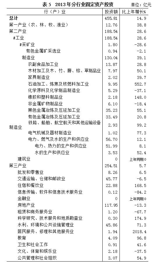 在固定资产投资中,分投资主体看,国有投资214.60亿元,增长26.6%;非国有投资241.21亿元,增长6.2%,其中民间投资217.65亿元,占固定资产投资比重为47.8%。分产业看,第一产业完成投资12.76亿元,增长38.8%;第二产业完成投资188.54亿元,增长28.6%,其中工业投资188.54亿元,增长28.6%;第三产业完成投资254.51亿元,增长5.7%。三次产业投资比重由上年同期的2.3:40.0:57.7调整为2.8:41.4:55.8,第一、第二产业占比分别提高0.5个百分点、1.4个百分点,第三产业回落1.9个百分点。