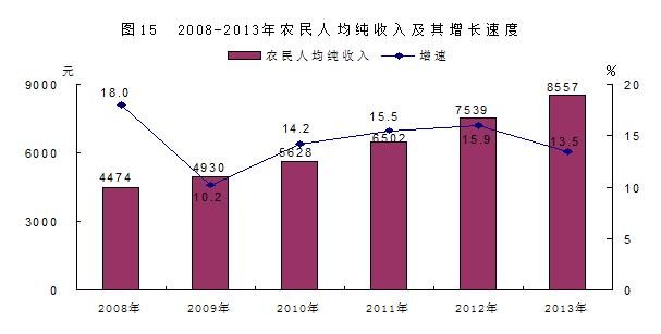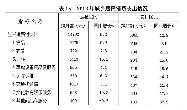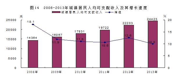 全年城镇居民人均可支配收入24423元,增长10.0%,扣除价格因素,实际增长7.7%;农村居民人均纯收入8557元,增长13.5%,扣除价格因素,实际增长10.8%。城镇居民食品消费支出占消费总支出的比重为40.4%,农村居民家庭食品消费支出占消费总支出的比重为53.0%。