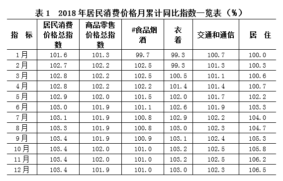 全年物价总水平同比上涨3.4%,涨幅比上年提高0.7个百分点。八大类商品和服务价格中,食品烟酒类价格上涨1.0%,衣着类上涨3.0%,居住类上涨6.5%,生活用品及服务类上涨3.8%,交通和通信类上涨2.3%,教育文化和娱乐类上涨1.8%,医疗保健类上涨8.2%,其他用品和服务类上涨2.5%。