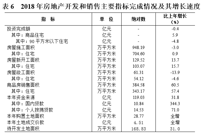全年房地产开发投资下降0.4%。其中,商品住宅投资增长5.9%;办公楼投资增长3.4%;商业营业用房投资下降36.2%;其他用房投资增长19.8%。