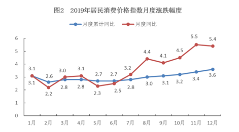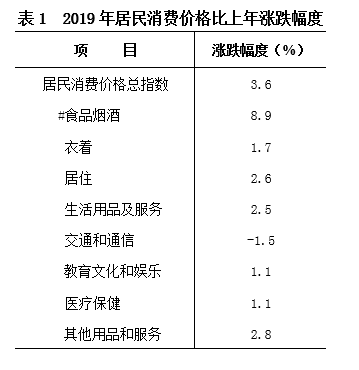 全年物价总水平同比上涨3.6%,涨幅比上年提高0.2个百分点。八大类商品和服务价格中,食品烟酒类价格上涨8.9%,衣着类上涨1.7%,居住类上涨2.6%,生活用品及服务类上涨2.5%,交通和通信类下降1.5%,教育文化和娱乐类上涨1.1%,医疗保健类上涨1.1%,其他用品和服务类上涨2.8%。