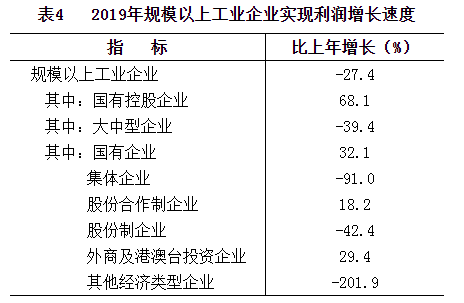 从企业效益看,全年规模以上工业企业实现营业收入下降2.9%;利润总额下降27.4%;亏损企业亏损额下降59.9%。