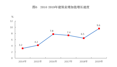 全年建筑业增加值增长9.6%。具有资质等级的总承包和专业承包建筑业企业90家,全年完成建筑业总产值176.59亿元,增长19.2%;房屋建筑施工面积628.99万平方米,增长25.0%;房屋建筑竣工面积269.50万平方米,下降20.2%。
