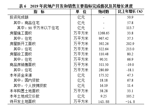 全年房地产开发投资增长50.9%。其中,商品住宅投资增长57.8%;办公楼投资下降56.5%;商业营业用房投资增长69.2%;其他用房投资增长45.8%。