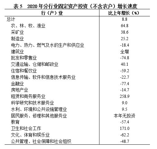 在固定资产投资中,基础设施投资增长34.8%,占固定资产投资的比重为17.9%。民间固定资产投资下降30.0%。分产业看,第一产业投资增长64.8%;第二产业投资增长16.8%,其中工业投资增长16.1%;第三产业投资增长1.2%。三次产业投资比重由上年的0.3:47.8: 51.9调整为0.5:51.3: 48.2,第一、第二产业比重分别提高0.2个百分点和3.5个百分点,第三产业比重回落3.7个百分点。
