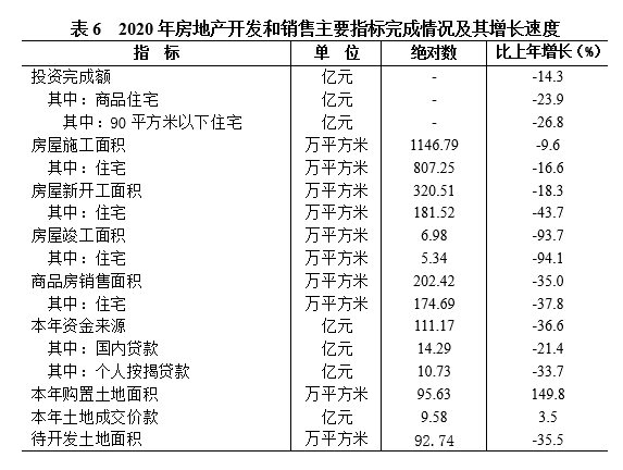 全年房地产开发投资下降14.3%。其中,商品住宅投资下降23.9%;办公楼投资增长78.9%;商业营业用房投资增长2.7%;其他用房投资增长112.6%。